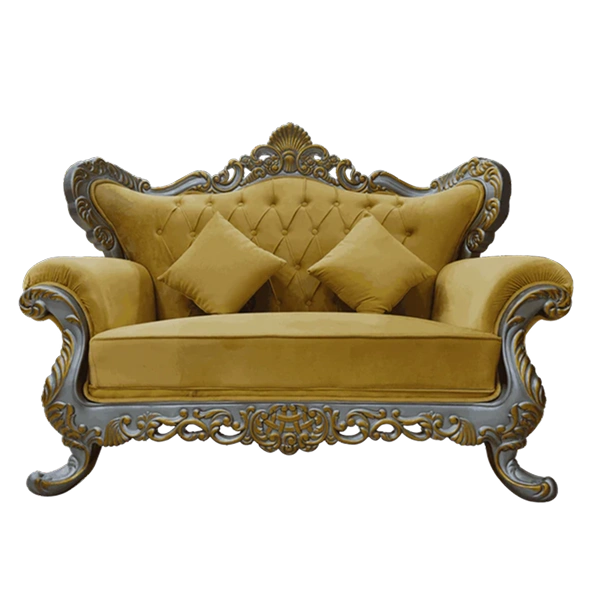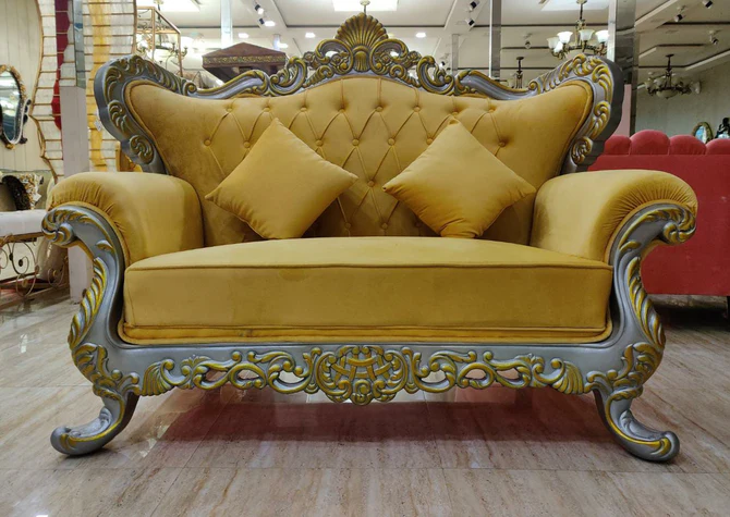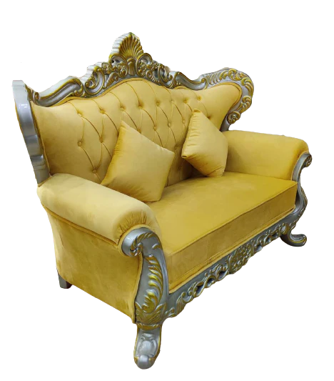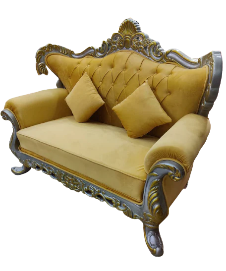 مبل سلطنتی آدری با طراحی فاخر و چشم‌نواز خود، جلوه‌ای اشرافی و مجلل به فضای پذیرایی می‌بخشد. منبت‌کاری‌های پرجزئیات و هنرمندانه در کنار فرم منحنی دسته‌ها و تاج، نشان‌دهنده ظرافت و اصالت سبک سلطنتی است. پارچه مخملی خوش‌رنگ با لمسه‌دوزی ظریف، حس لوکس بودن و شکوه را به‌خوبی منتقل می‌کند.